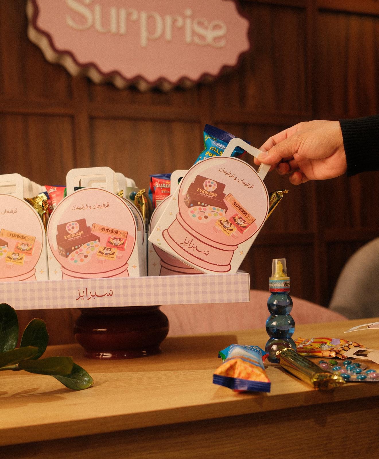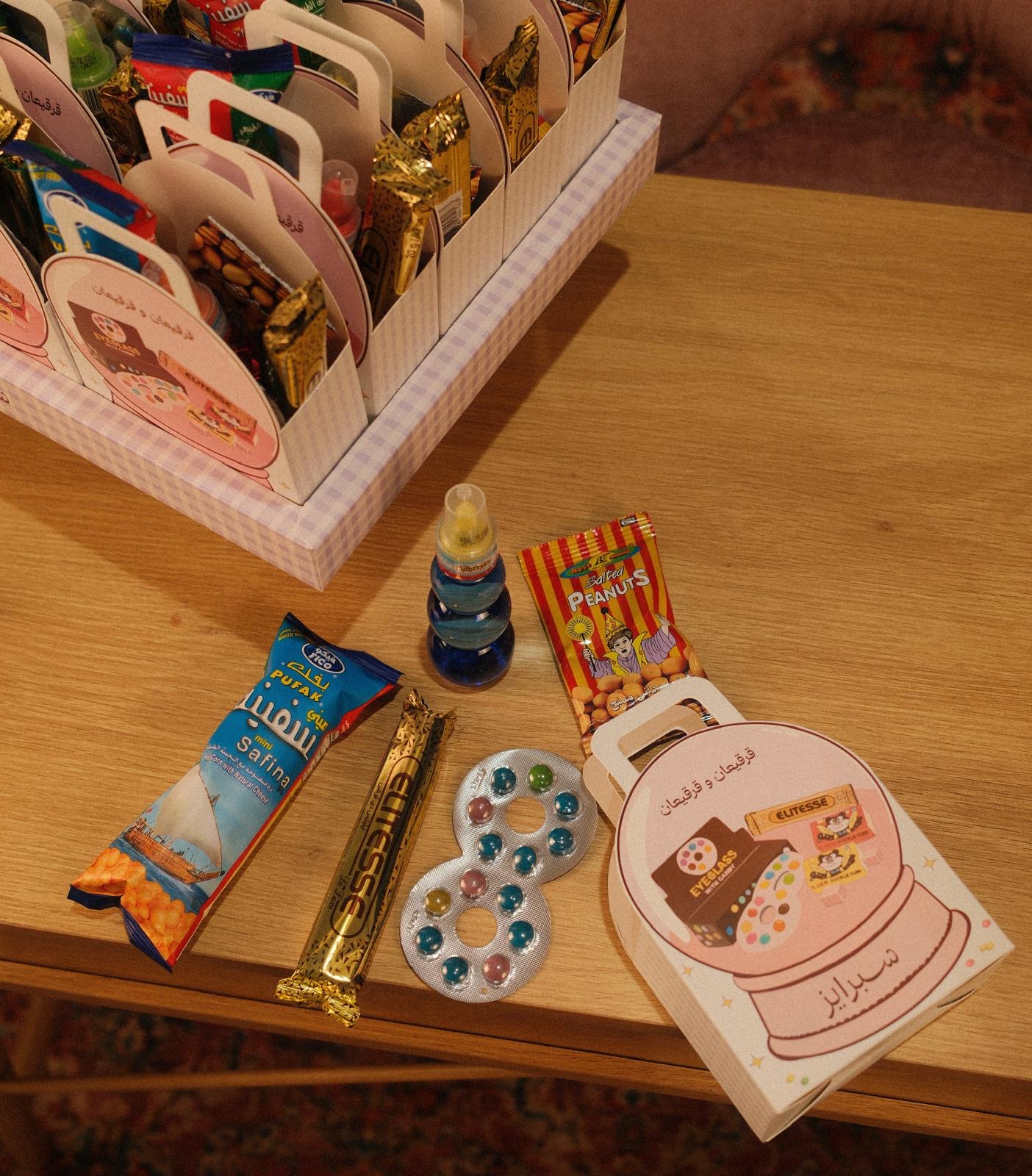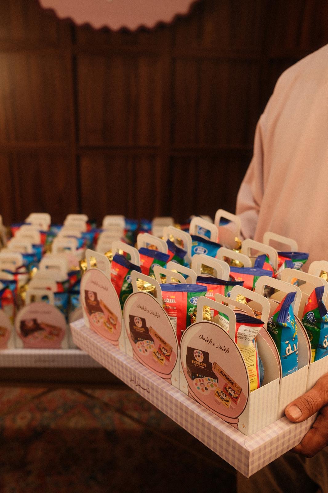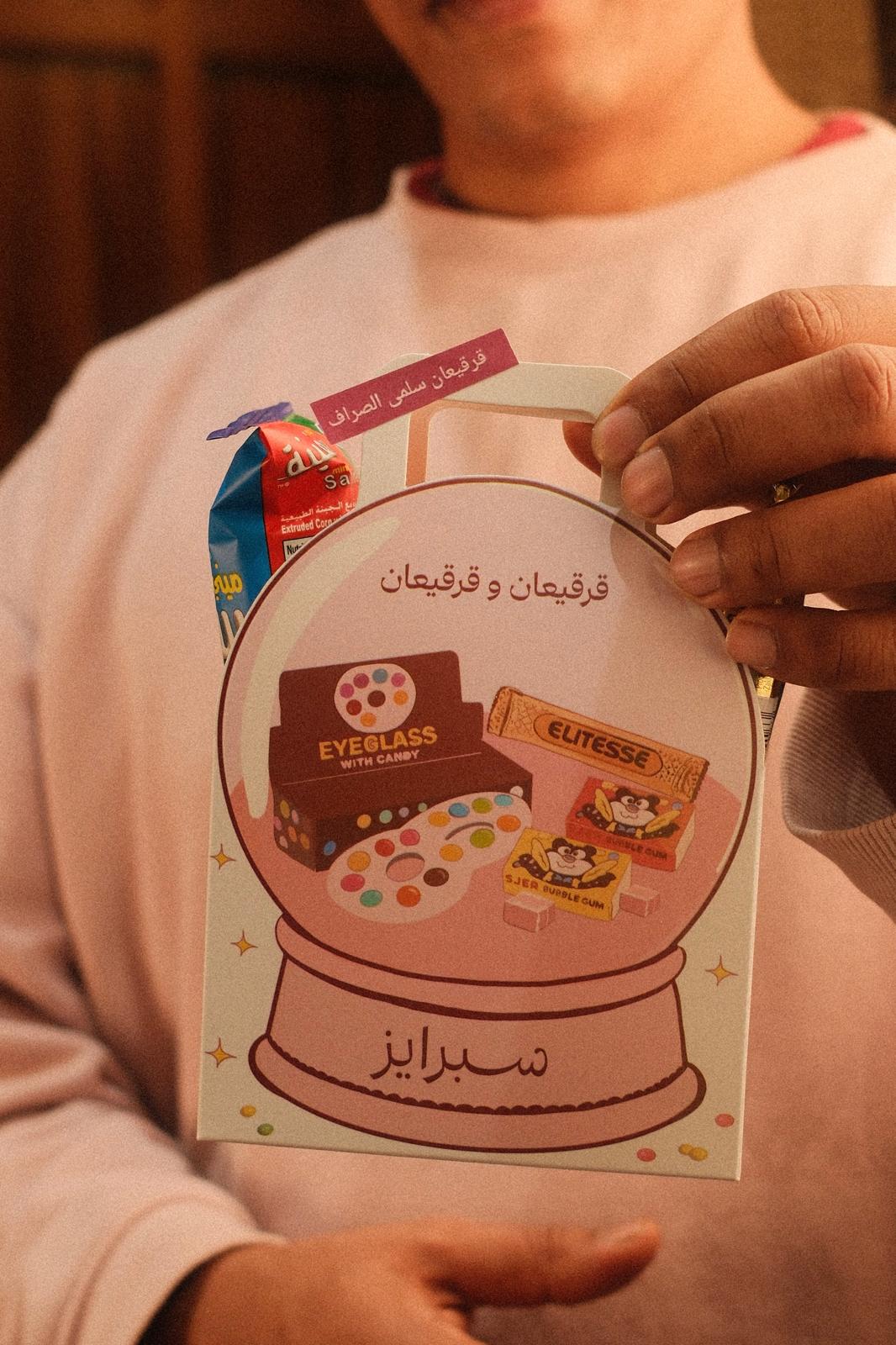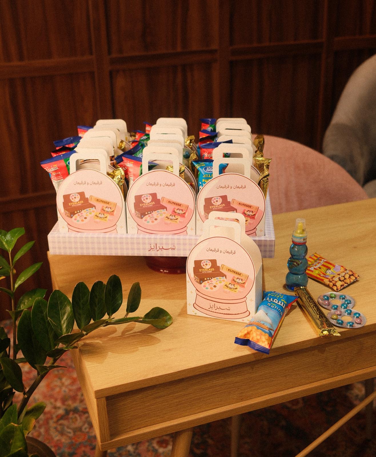 قرقيعان بتصميم يونس للاطفال داخله ٥ انواع حلاو كاكاو وبطاط الصينيه فيها ١٥ حبه